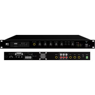 Amplifier includes 3 microphone inputs, 2 auxiliary inputs and one EMC input. It has a USB port and a fluorescent screen to display the sound number. It is suitable for the exchange and background music system. It has high temperature, overload and short circuit protection.