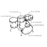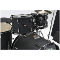 Complete studio drum kit consisting of 20" x 16" bass drum, 10" x 7" tom and 12" x 8", 14" tom "x 13" and a 14 "x 5" Snare Drum. All drums feature 6-ply wrapped poplar shells with 7.5mm thickness and laminate coating that provide a very nice, warm and natural sound with a mid attack.