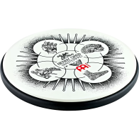Develop speed, power and precision with the 12" Benny grab master pad from Meinl Percussion. This pad is made for quiet practicing on a snare drum, and it can be mounted on a standard snare stand. The bottom side has a layer of foam to prevent it from sliding on a tabletop or snare drum, and it also helps to keep vibrations down when practicing. The playing surface provides a realistic feel with a natural rebound and features a unique design from Benny that draws attention to the physical parts of the body that must all Be trained and kept in shape in order to make music.