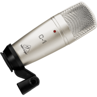The Behringer C-1 Studio Condenser Microphone medium diaphragm condenser microphone is probably one of the best values you'll find in a condenser mic. This is a great all-around studio recording mic, ideal for capturing vocals and instruments in the studio. It also excels in live applications. The pressure-gradient transducer with its shock-mounted capsule produces a smooth, flat frequency response. You get a rugged, die-cast metal chassis, gold-plated XLR connector, a swivel stand mount, and foam-padded carrying case. You can't go wrong with the Behringer C-1.