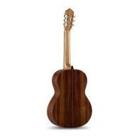 L’Alhambra 7FC est un très bel instrument, entièrement massif. Son dos et ses éclisses sont en cyprès massif, et sa table d’harmonie est en épicéa allemand massif également. Ce modèle possède un manche en cèdre renforcé par de l’ébène, et sur ce manche vient se plaquer la touche qui est elle aussi en ébène. Les mécaniques dorées viennent parfaire cette jolie finition. Un golpéador transparent vient protéger la table sous la rosace.