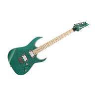 Guitare électrique Ibanez modèle RG421MSP TSP, finition Turquoise Sparkle, manche érable profil Wizard III, touche érable, corps en meranti, frettes jumbo, 2 micros humbucker Quantum, chevalet F106 bridge, hardware cosmo black.