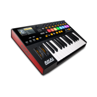 Clavier maître MIDI USB 25 touches semi-lestées, 8 pads RVB, 4 banques pour les pads, 4 boutons rétro-éclairés, avec entrées pour pédales d'expression et de sustain. Inclut logiciels : Ableton Live Lite, AIR Music Tech Hybrid 3, SONiVOX Twist 2.0 et Akai Pro MPC Essentials