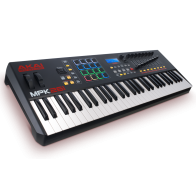 Clavier maître MIDI USB 61 touches semi-lestées, 16 pads RVB, 4 banques pour les pads, 8 boutons rétro-éclairés, avec entrées pour pédales d'expression et de sustain. Inclut logiciels : Ableton Live Lite, AIR Music Tech Hybrid 3, SONiVOX Twist 2.0 et Eighty-Eight ainsi que Akai Pro MPC Essentials.
